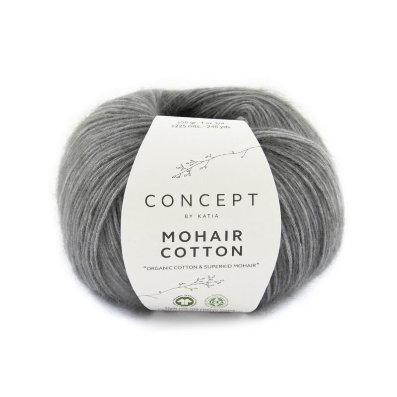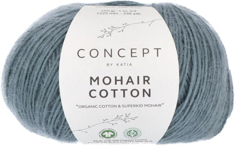 Het garen bestaat voor 70% uit katoen organisch en 30% Mohair superkid.