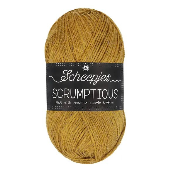 Scrumptious 323 - Cinnamon Peach CobblerDe Scheepjes Scrumptious is een hele fijne basisdraad, die vooral bijzonder is vanwege de samenstelling! 50% van dit garen bestaat namelijk uit gerecyclede plastic-flessen. Op een bol van 100 gram zit 300 meter, je breit en haakt…