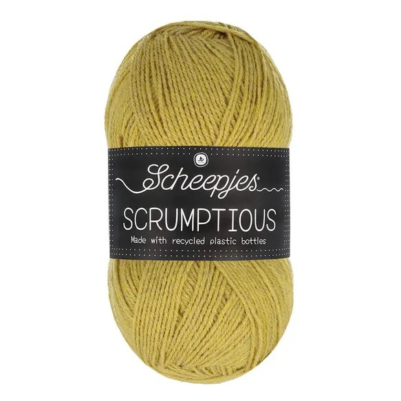 Scrumptious 311 - Chai ShortbreadDe Scheepjes Scrumptious is een hele fijne basisdraad, die vooral bijzonder is vanwege de samenstelling! 50% van dit garen bestaat namelijk uit gerecyclede plastic-flessen. Op een bol van 100 gram zit 300 meter, je breit en haakt…