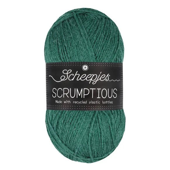 Scrumptious 336 - Green Tea ÉclairsDe Scheepjes Scrumptious is een hele fijne basisdraad, die vooral bijzonder is vanwege de samenstelling! 50% van dit garen bestaat namelijk uit gerecyclede plastic-flessen. Op een bol van 100 gram zit 300 meter, je breit en haakt…